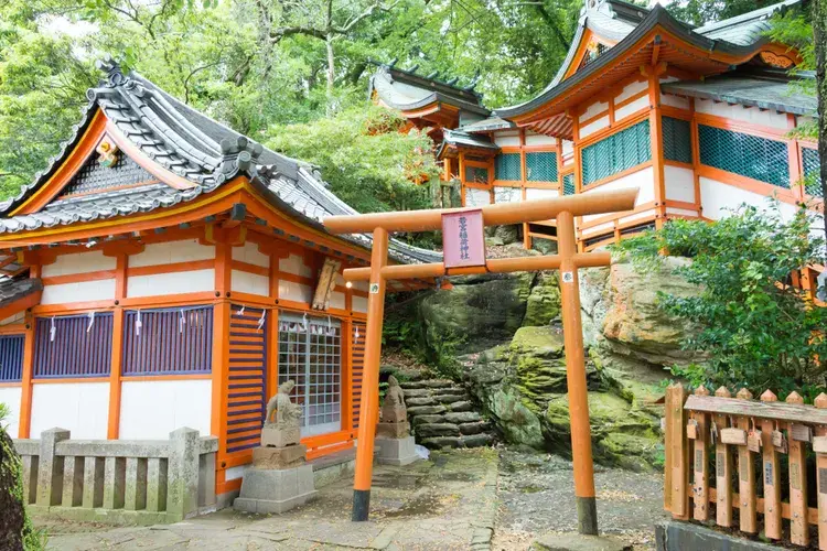와카미야 이나리 신사는 일본의 쌀과 다산의 신 이나리를 모시는 곳으로 여우와도 관련이 있습니다. 이 신사는 특히 19세기 초로 거슬러 올라가 대나무 숲에서 노는 신사의 신을 표현한 곡예 전시인 다켄게이라는 가을 축제로 유명합니다. 축제 기간 동안 여우 가면을 쓴 두 명의 연주자가 10m 높이의 대나무 장대에 올라 전통 음악의 리듬에 맞춰 묘기를 선보입니다. 공연은 환호하는 관중들에게 '모치(떡)'를 던지는 것으로 끝납니다.