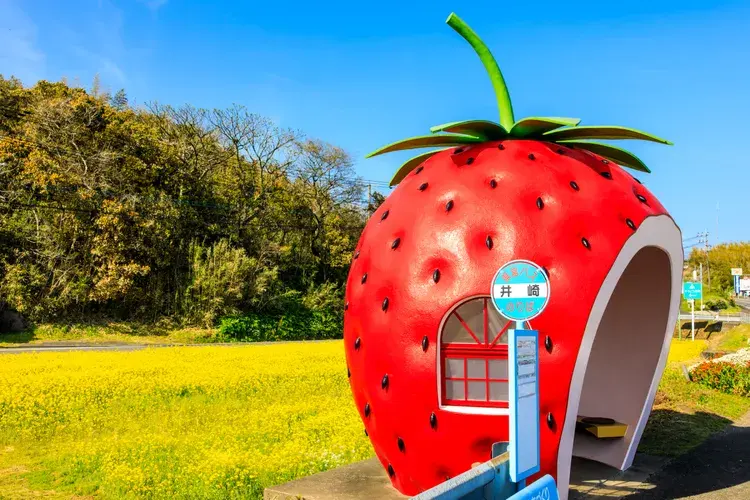 나가사키의 고나가이초와 그 주변 지역에는 딸기, 멜론, 귤, 토마토, 수박을 본뜬 과일 모양의 아름다운 버스 정류장 16곳이 있습니다. 원래는 나가사키 여행 박람회를 위해 1990년 고가나이 지역 주민들이 만들었는데, 행사 후에도 지역 랜드마크로 남아 해변 마을의 동화 같은 풍경과 빈티지한 모습에 기여하고 있습니다. 과일 버스 정류장은 특히 나가사키현의 이 지역에 있는 매력적인 해안 및 꽃밭과 함께 특별한 사진을 남길 수 있게 해줍니다!