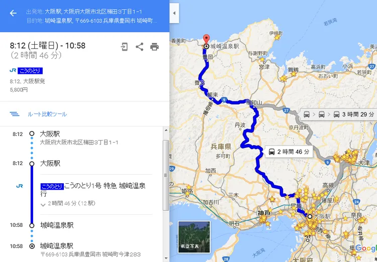 오사카역에서 코우노도리 특급을 타고 약 3시간 정도 소요되는 거리에 있습니다.