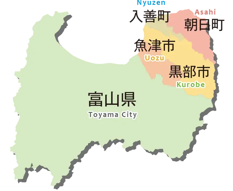 아사히마치는 도야마와 니가타현의 경계에 위치하여 해발 0m의 비취 해안부터 표고 3,000m의 북알프스 아사히다케, 시로우마다케까지, 다양한 자연의 혜택을 받고 역사와 문화가 숨 쉬는 마을입니다.