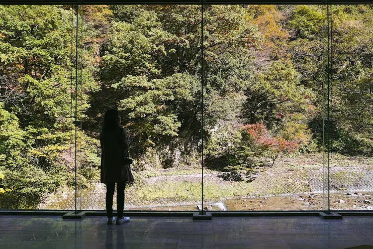 호텔 로비에는 계절의 채색을 바라볼 수 있는 바닥까지 닿는 커다란 창이 있습니다. 목욕 후에 여기 앉아서 따뜻한 음료를 마시면 마음마저 따뜻해집니다.