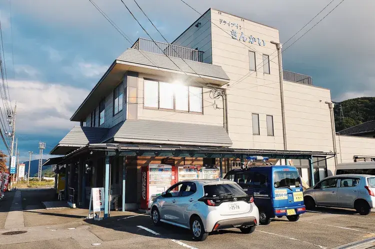 드라이브인 긴카이에는 신선하고 단맛이 나는 다라지루 외에도 생선 가게 직송의 해산물, 계절 요리가 있습니다. 1층은 현지인과 장거리 운전자에게 인기 있는 식당이고, 2층은 휴식용 숙박 시설입니다.