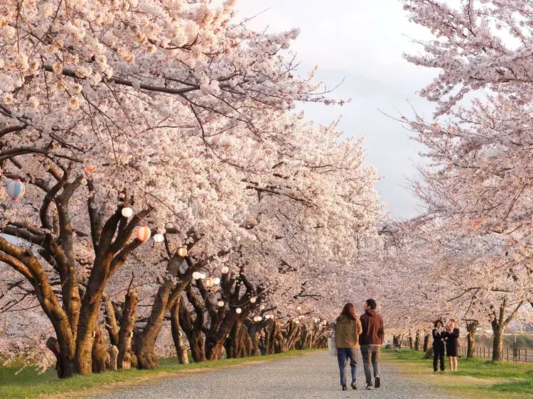 푸른 하늘과 하얀 구름, 형형색색의 꽃들이 서로 어우러져 황홀할 정도로 아름답습니다. 해 질 녘이 되면 따뜻한 햇볕이 벚나무 위를 비스듬히 비추고 있습니다. 밤이 되면 벚나무가 라이트업 되어 낮과는 전혀 다른 로맨틱한 분위기를 연출합니다. 시간에 따라 다른 모습을 보는 것도 아주 즐거운 경험이 될 것입니다.
