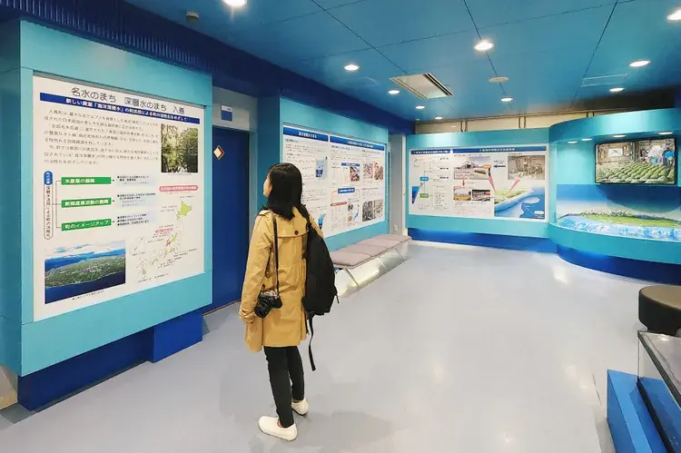 해양 심층수 파크는 급수 시설뿐만 아니라 관내에서 취수 방법을 자세하게 해설하고 있으며, 화장품이나 케어 용품, 식품이나 조미료, 목욕용품 등 심층수를 활용한 상품도 전시하고 있습니다. 시설 앞에서는 초염분 5% 농축수, 3% 심층수, 탈염수의 3가지 물을 직접 시음할 수 있습니다.