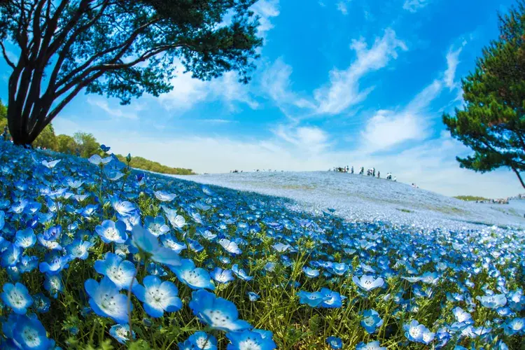 이바라키현의 히타치 해안 공원은 봄이 되면 미하라시 언덕을 뒤덮는 푸른 네모필라의 화려한 풍경으로 잘 알려져 있습니다. 꽃의 연한 푸른색은 맑은 날 하늘과 바다의 푸른색을 흉내 내며 마법처럼 기운을 돋워줍니다. 코스모스와 수선화를 포함한 계절 꽃도 이곳에서 감상할 수 있습니다. 크고 넓은 공원이어서 자전거 도로와 작은 놀이공원이 있는 것이 특징입니다. 자세한 내용은 이 기사를 참고해 주세요.
