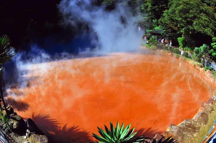 오이타현 벳푸지고쿠(지옥)의 부글부글 끓고 김이 나는 온천은 예로부터 모든 관광객을 놀라게 했습니다. 과거에는 물이 저주받았다고 생각해서 비공식적으로 '벳푸의 지옥'이라는 이름을 얻게 되었습니다. 너무 뜨거워서 직접 들어갈 수는 없지만, 연한 청록색부터 녹슨 붉은색, 우윳빛 흰색까지 다양한 색을 띠고 있습니다. 가마도지고쿠, 즉 '가마 지옥'에서는 거품이 이는 온천의 증기로 다양한 음식들이 요리됩니다. 오이타 전역에서 즐길 수 있는 온천 증기로 요리된 음식은 놓쳐서는 안됩니다! 30-40분마다 간헐천이 분출하는 다쓰마키지고쿠에서는 화산 활동을 경험할 수 있습니다.