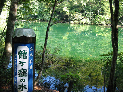 분당 30톤의 경이로운 용출량을 자랑하는 류가쿠보는 하루에 한 번, 연못의 물이 바뀌어서 결코 탁해지지 않습니다. 수질도 좋고 음용수로도 맛있는 물을 마실 수 있습니다. 오랜 옛날부터 용이 사는 전설의 호수로 주변 지역 사람들의 추앙받고 있는 신비한 곳입니다.