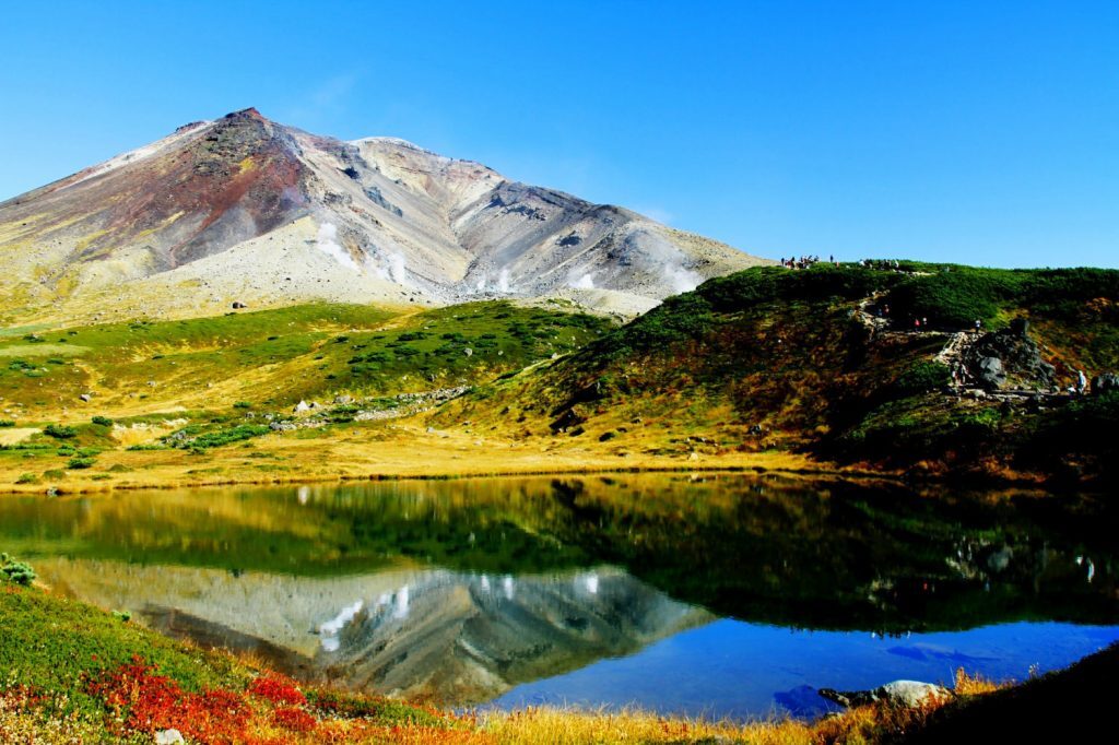 홋카이도의 최고봉 화산 '아사히다케'의 고층 습원에는 크고 작은 늪과 연못이 펼쳐져 있습니다. 누마노다이라는 분화구에 고인 물이 축적되어 만들어진 것으로 고층 습원 곳곳에 있습니다. 하늘이 맑게 개면 누마노다이라 수면에 아사히다케가 반사되어 신비로운 풍경을 볼 수 있습니다.