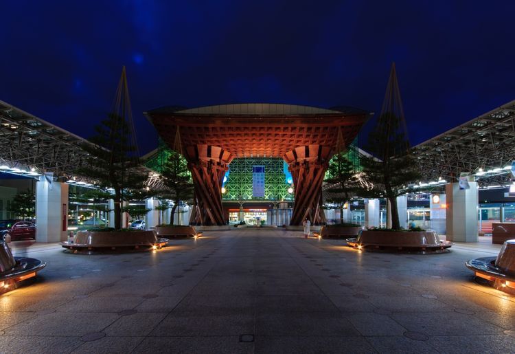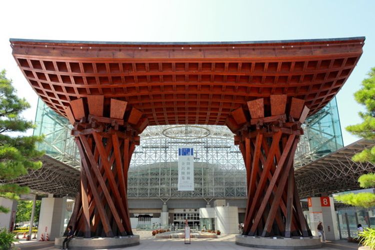 일반적으로는 기차역을 최고의 관광지로 꼽지 않지만, 가나자와역은 예외입니다. 이곳은 모던하고 기하학적인 디자인으로 지어진 도리이(신사에서 흔히 볼 수 있는 일본 전통문)를 닮은 붉은색 문이 특징입니다.