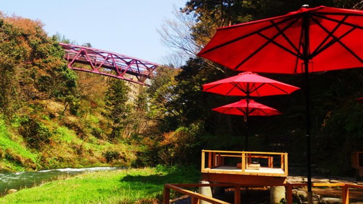 이시카와에서 온천을 체험하고 싶다면 야마나카 온천이 제격입니다. 자연과 전통문화, 그리고 온천에도 몸을 담글 수 있습니다. 위 사진의 가쿠센케이노노다테는 아름다운 환경을 즐기면서 차를 즐길 수 있는 멋진 장소입니다.