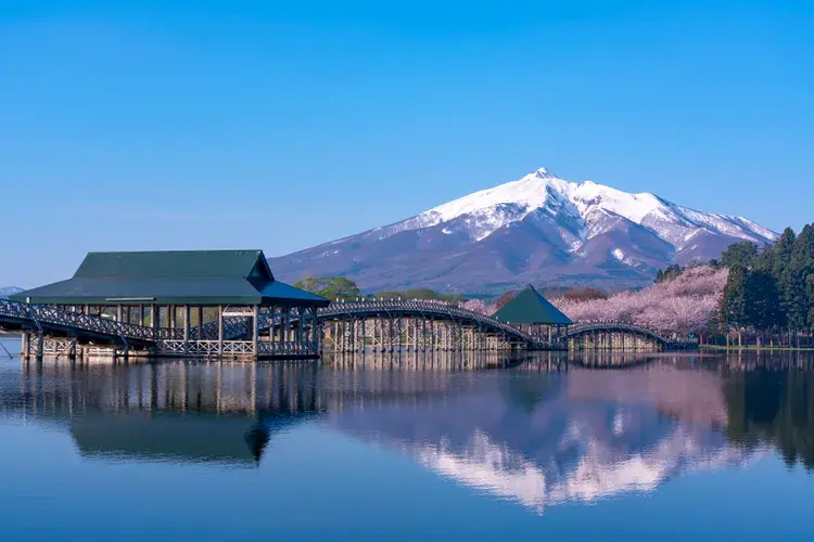 멀리 이와테산 타워가 보이는 아름다운 쓰가루 후지미 호수를 독특한 삼각 아치 모양의 쓰루노 마이바시 다리가 가로지릅니다. 후지미코 공원과 다초즈루 자연공원은 다리의 양 편에 있기 때문에 한 곳에서 다른 한 곳으로 느긋하게 산책을 즐길 수 있으며, 피크닉 공간으로 혹은 놀이터 및 낚시와 보트 타기를 할 수도 있습니다.