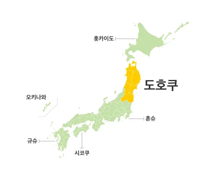 도호쿠 지역은 일본의 본섬인 혼슈 최북단의 지역들을 가리킵니다.