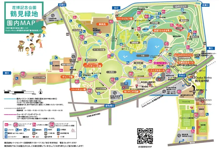 쓰루미료쿠치공원은 국제 꽃 박람회장으로 사용되었던 곳들뿐만 아니라 다양한 시설이 함께 있습니다. 테니스코트, 축구장, 골프코스, 바비큐 광장, 승마장, 온천 등이 있어 가족단위로 나들이 온 사람들을 많이 볼 수 있습니다.
