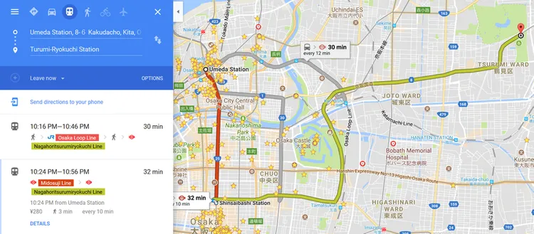 타니마치선 히가시우메다역-모리노미야역-나가호리츠루미료쿠치선 환승-쓰루미료쿠치역