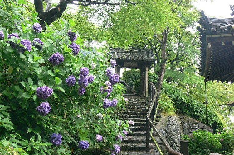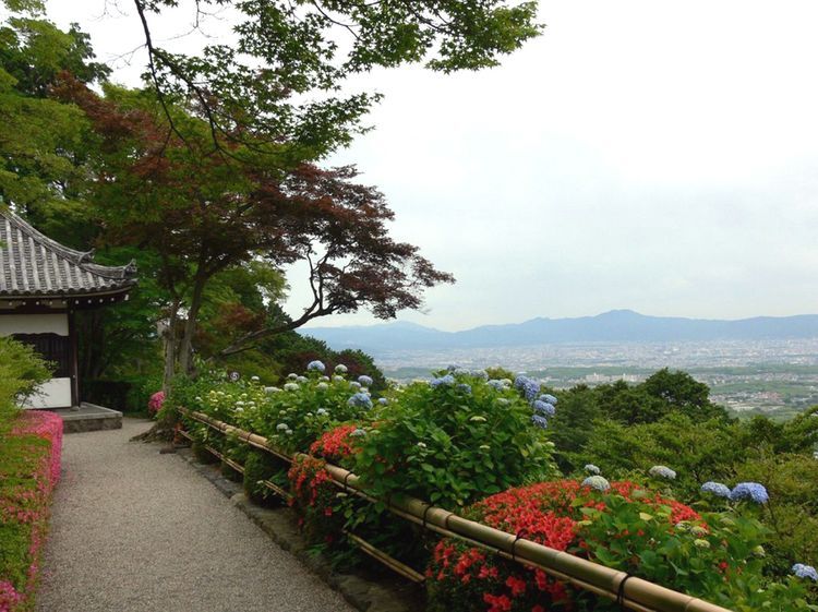 절이 세워진 광활한 부지는 대부분이 구불구불한 오솔길의 산비탈입니다. 녹음 가득한 주위의 모퉁이를 돌아보면 또 새로운 곳을 발견할 수 있는 인상적인 경치입니다. 맑은 날에는 산 중턱 바로 아래에 있는 고요한 오하라노 지역뿐 아니라 교토시 전체가 내려다보입니다. 교토는 높은 빌딩이 많은 도시는 아니지만, 교토의 유명 랜드마크인 교토 타워, 운이 좋다면 교토역을 출발하는 신칸센이 태양빛에 반사되는 것이 보이는 경우도 있습니다.