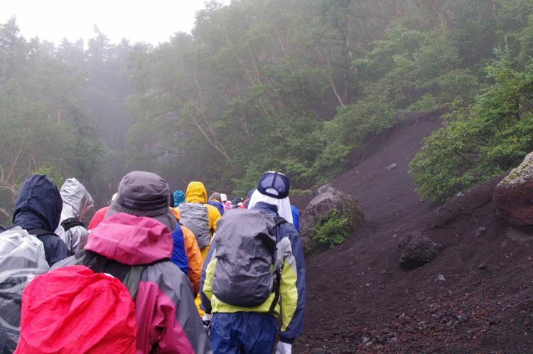 등산로 개방 기간 중에 고고메 지점에서 후지산 정상을 등반하려는 등산객