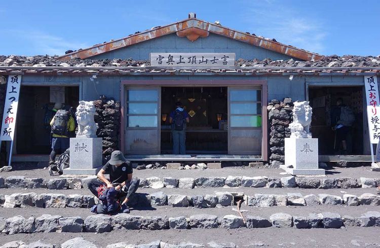 후지노미야 루트의 정상 부근에 자리한 신사. 등산 시즌 동안에는 신관이 상주해서 국가 번영을 비롯하여 현지 신앙인・외부 신앙인과 참배를 목적으로 후지산에 오르는 등산객들의 안전을 기원하고 있습니다. 그 외에도 순산 기원, 개운・액막이, 무병식재(병 없이 건강한 삶을 기원), 사업 번창, 학업 성취・합격 기원, 인연 성취, 화난소제(불에 관련된 화를 입지 않도록 기원), 교통 안전 등 다양한 효험이 있다고 여겨집니다. 각종 부적과 금강장(지팡이), 고슈인(도장)도 있으니 정상에 오르면 꼭 참배해 보세요.