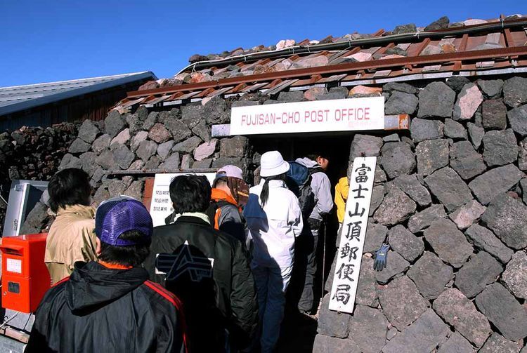 여름 등산 시즌에 한해 후지산 정상에서 운영되는 우체국으로, 일본에서 가장 높은 곳에서 엽서를 보낼 수 있습니다. 이용 가능한 시간은 오전 6시부터 오후 2시까지. 이곳에서 보낸 엽서에는 후지산 정상 우체국에서만 받을 수 있는 풍경인이 찍히며, 우표 등 후지산에 관련된 상품도 구매할 수 있습니다. 통상 7월 10일경에서 8월 20일 사이에 운영되지만 매년 운영 일정이 변동되니 주의하세요. 또한, 여느 우체국과 달리 ATM은 설치되어 있지 않습니다.