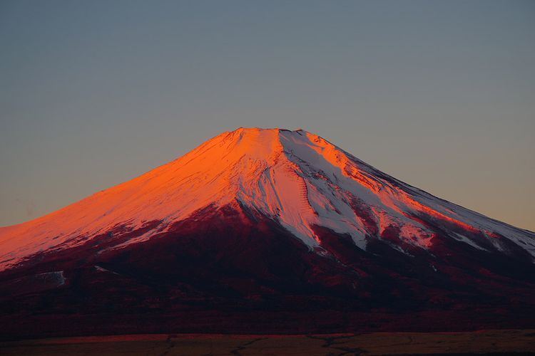 '아카후지'는 등산 시즌인 여름철 등에 눈이 쌓여 있지 않은 후지산이 저녁놀이나 아침 햇살로 붉게 물든 모습을 의미하는 말입니다. 한편, '베니후지'는 겨울철에 눈으로 뒤덮인 후지산이 붉게 물든 모습을 가리킵니다(사진 속 풍경은 '베니후지').