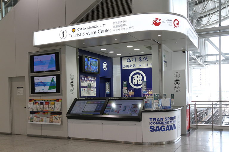 JR 오사카 센터 3층, 남쪽과 북쪽을 연결하는 다리의 남쪽 구역에 관광 서비스 센터가 있습니다. 연결 다리의 개찰구를 나와 직진하면 오른쪽에 있습니다.