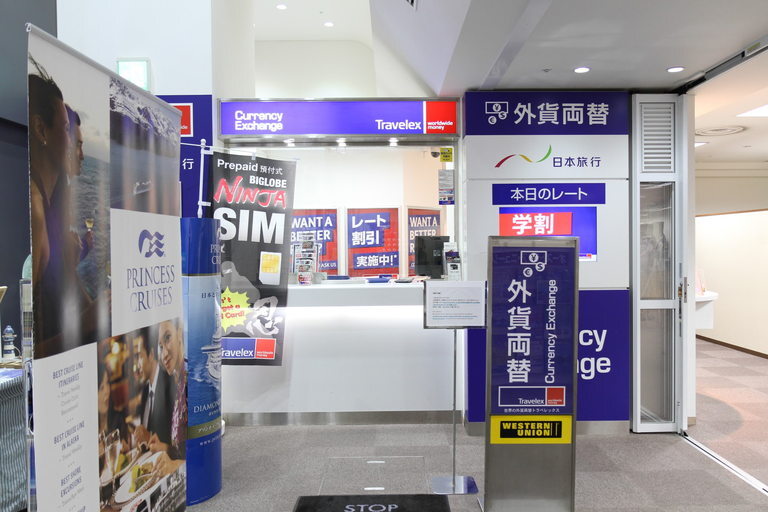 중앙 개찰구에서 왼쪽(북쪽)으로 가시면 오른쪽의 TiS Osaka 안에 위치한 환전소가 보입니다. 또 다른 환전소는 그랜드 프론트 오사카의 북쪽 건물 B1층에 있습니다.