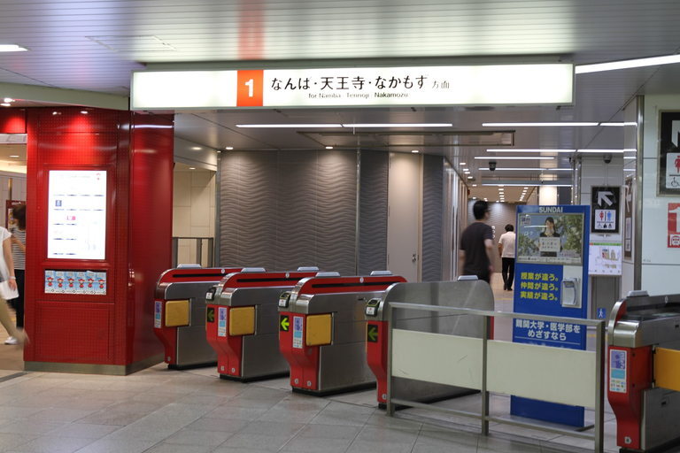 | 신세카이/츠텐카쿠 | 1번 플랫폼에서 니시쿠조 혹은 벤텐초 방면의 JR 오사카 순환선을 타세요. | 이마미야역 | 15분 |