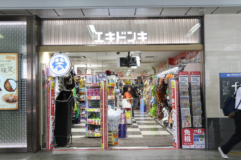 역 안의 에키 마르쉐 구역에 있는 에키돈키도 추천입니다. 화장품부터 식료품, 가전 제품까지 다양한 제품을 갖추고 있습니다! 외국 관광객을 대상으로 하는 면세품과 오사카 기념품도 있습니다. 사쿠라바시 개찰구와 가까운 곳에 있으므로, 열차를 이용하기 전후에 들르기 좋습니다.