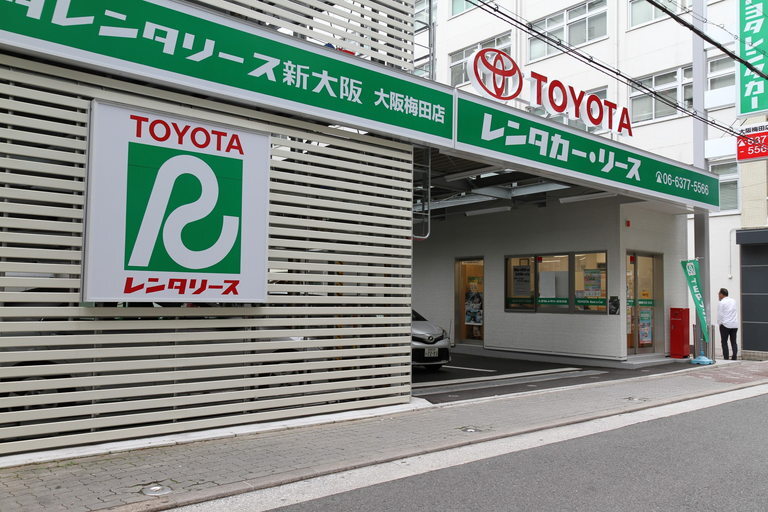 두 번째는 도요타 렌터카입니다. 그랜드 프론트 오사카로 갈 때와 같은 길을 이용하실 수 있습니다. 1층의 북쪽과 남쪽 건물 사이의 구역에서 동쪽으로 1블록 이동해서 좌회전하시면 보입니다.