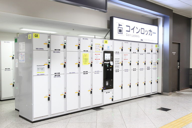 JR 오사카역 1층과 3층에 짐을 맡길 수 있는 물품보관함이 있습니다. 물품보관함이 가장 많은 지역은 중앙 매표소 부근을 지나, 중앙 출구 개찰구 바로 앞에 있는 곳입니다. 이곳에는 물품보관함에 넣기에는 너무 큰 짐을 맡길 수 있는 수화물 보관소도 있습니다.