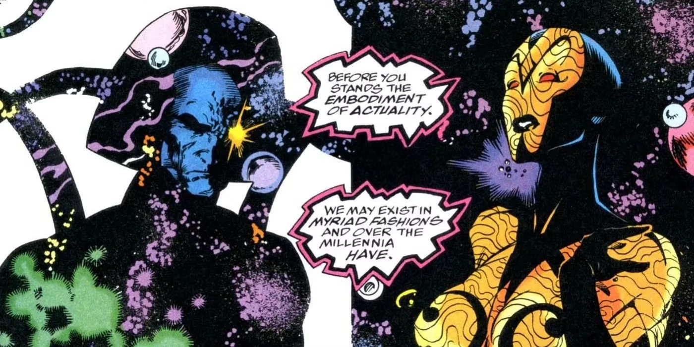 우주가 존재하기 전이나 존재하기 전에 창조된 Marvel의 추상적인 존재의 우주적 판테온은 인간의 마음이 이해하기 어려운 개념을 나타냅니다. 이터니티와 인피니티가 창조와 확장의 힘이라면, 데스와 오블리비언은 파괴를 지배함으로써 그들의 힘을 상쇄합니다. 네 존재는 모든 창조와 모든 파괴를 의인화하여 그 힘을 측량할 수 없게 합니다. 개별 존재가 전체 우주를 파괴할 수 있는 능력이 있을 수 있지만 Marvel의 우주 판테온은 인간의 결점을 제거하고 그들이 나타내는 개념의 영속화에 초점을 맞춘 우주 자체를 나타냅니다. 최초의 우주 존재인 죽음 은 1941년 마블 미스터리 코믹스 #21 을 위해 잭 커비 와 조 사이먼 에 의해 만들어졌습니다 .. 그 후 Eternity는 1965년의 Strange Tales #138 을 위해 Stan Lee 와 Steve Ditko 에 의해, 1984년 Iceman #1 을 위해 JM DeMatteis 와 Alan Kupperberg 의 Oblivion , 1991년 Quasar #24 를 위해 Lee와 John Buscema 의 Infinity가 제작되었습니다 . 우주 판테온은 모든 우주에서 가장 강력한 존재를 대표하지만 다중 우주가 작동하면 더 이상 먹이 사슬의 최상위에 있지 않습니다.