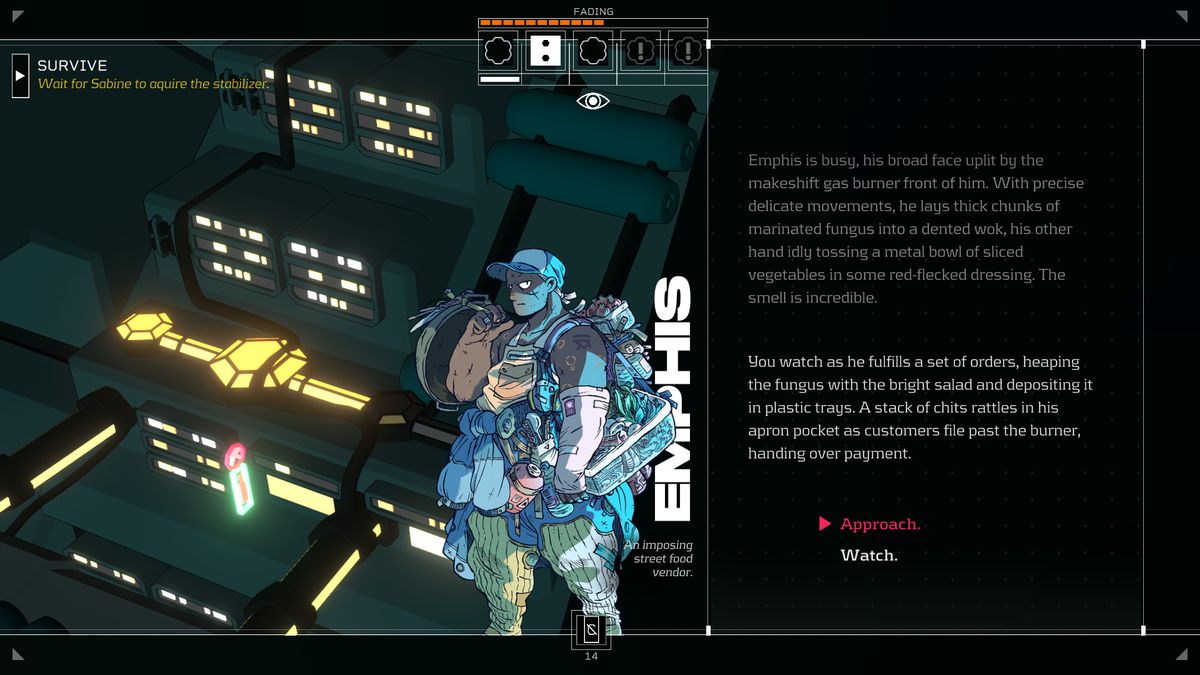 주사위 기반의 탁상용 게임에서 많은 것을 끌어 내는 Citizen Sleeper 는 플레이어가 매일 타협하도록 강요합니다. Ambergris를 수리하고 Feng이 Eye의 비밀을 해킹하는 것을 돕거나 노점상 Emphis에게 버섯을 공급하고 싶습니까? — 제한된 일일 무작위 주사위 세트가 있는 모든 것. 다른 의사결정 기반 게임과 달리 Citizen Sleeper 는 잘못된 선택으로 인해 "처벌"을 받은 것처럼 느껴지지 않습니다. 대부분 희소성이 의사 결정에 어떤 영향을 미치는지 보여줍니다. 생존 모드에서 생활하는 것이 헤지와 스크롤링을 의미하는 방법을 보여줍니다. 당신이 발전하고 자신을 키울 방법을 찾을 때 당신의 선택권은 확장되어 궁극적인 질문에 이르게 됩니다. 당신은 머물 것인가, 아니면 다시 한 번 탈출할 것인가?