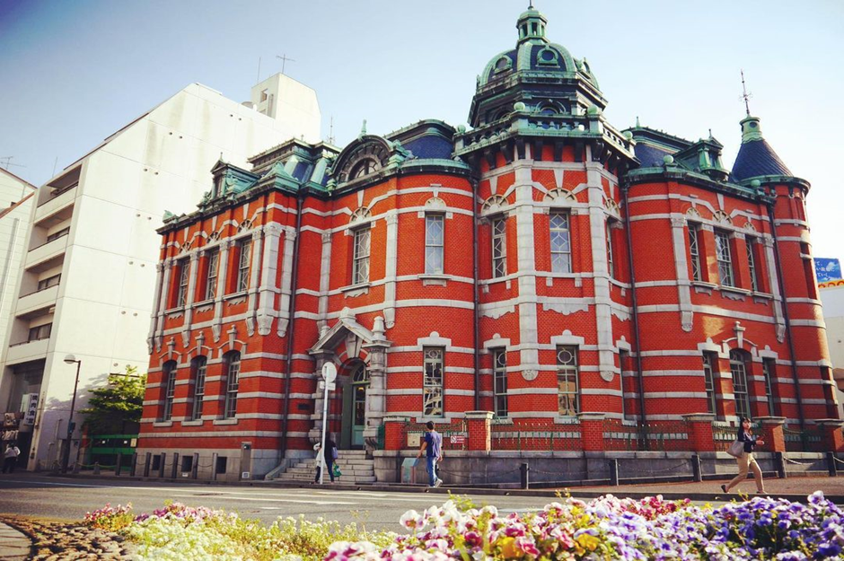 후쿠오카시 덴진 1초메의 쇼와도리 거리에서 나카스와 덴진 중간 부근에 위치하는 '후쿠오카시 아카렌가 문화관'은 본래 일본 생명보험 주식회사 규슈 지점이 있던 곳입니다. 도쿄역을 개축한 다쓰노카타오카 건축 사무소가 설계하였으며, 궁전을 연상시키는 지붕과 붉은 벽돌로 된 외벽이 눈길을 끕니다.