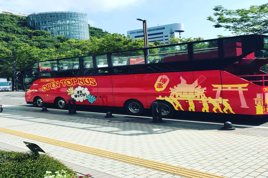 '후쿠오카 오픈 탑 버스'는 후쿠오카 시내의 주요 관광 명소를 순회하는 일본의 첫 국산 브랜드 오픈 탑 버스(2층 부분의 지붕이 뚫려 있는 버스)입니다. 일반적인 관광과 달리 약 3.2m 높이에서 거리를 내다보기 때문에 특별한 기분을 맛볼 수 있다고 평판이 자자합니다. '어반 레드', '마린 블루'라 불리는 2종류의 차량이 있으며 각각 순회하는 코스도 다릅니다.