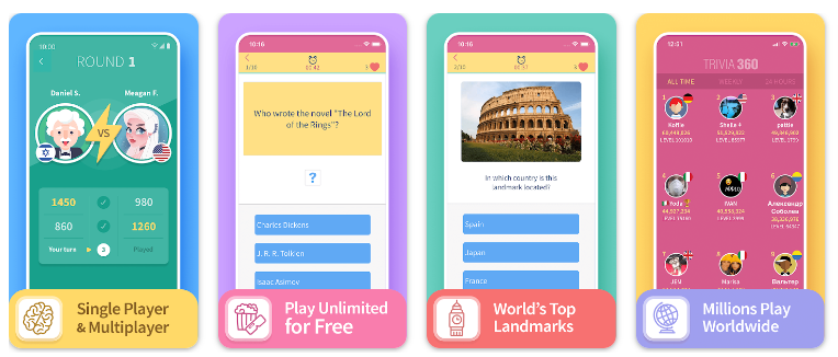플레이어는 리더 보드에 액세스 할 수있을뿐만 아니라 수백만 명의 사람들을 사로 잡는 퀴즈 게임에서 다른 플레이어가 온라인으로 플레이하는 것을 볼 수 있습니다. Trivia 360은 두 사람을위한 퀴즈 게임입니다. 집중력을 최대한 발휘해야합니다.