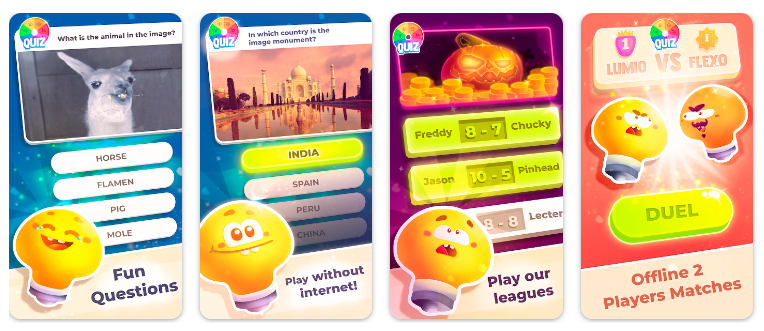 질문과 답변. 수천 개의 질문에 답할 수있는 무료 게임 인터넷에 접속할 필요가 없고, 2명이상이 이용할 수있는 게임입니다. 사용 가능한 카테고리는 과학, 역사, 수도, 스포츠, 자동차 등 다양하며, 구체적으로 네 가지 답변이 있습니다.
