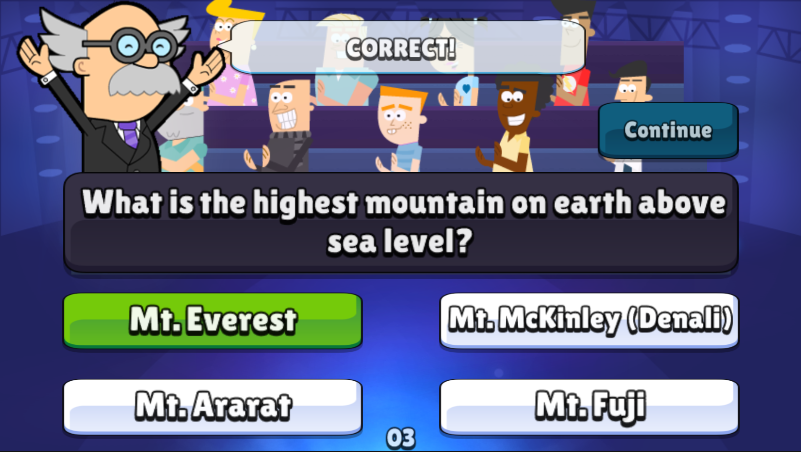 백만장 자에 가까운 친구들과 즐거운 시간을 보낼 수있는 게임을 찾는 것부터, 배우고, 두뇌를 운동하고, 즐거운 시간을 보내는 제목입니다. 처음에는 질문이 쉽지만 더 많은 라운드를 거치면 레벨이 눈에 띄게 증가합니다.