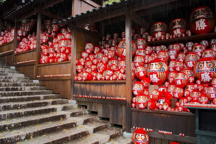 다루마 인형이 계속 제작되면서 마침내 사찰의 상징 중 하나가 되었는데, 이는 다루마 인형이 목표 달성 과정에서 투쟁을 이겨내는 승리를 상징하기 때문이었습니다. 오늘날에는 경치 좋은 산속 사찰 구석구석에 가득한 인형들을 발견할 수 있습니다.