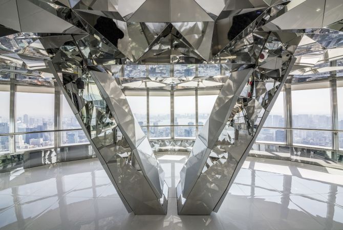 그러나 진정으로 장엄한 전망을 보려면 Top Deck를 찾으십시오. 하늘에서 250미터 높이에 있는 이 지점에서는 아래로 대도시의 탁 트인 전망을 감상할 수 있으며 날씨가 좋으면 지평선에 스카이트리와 후지산까지 조망할 수 있습니다.