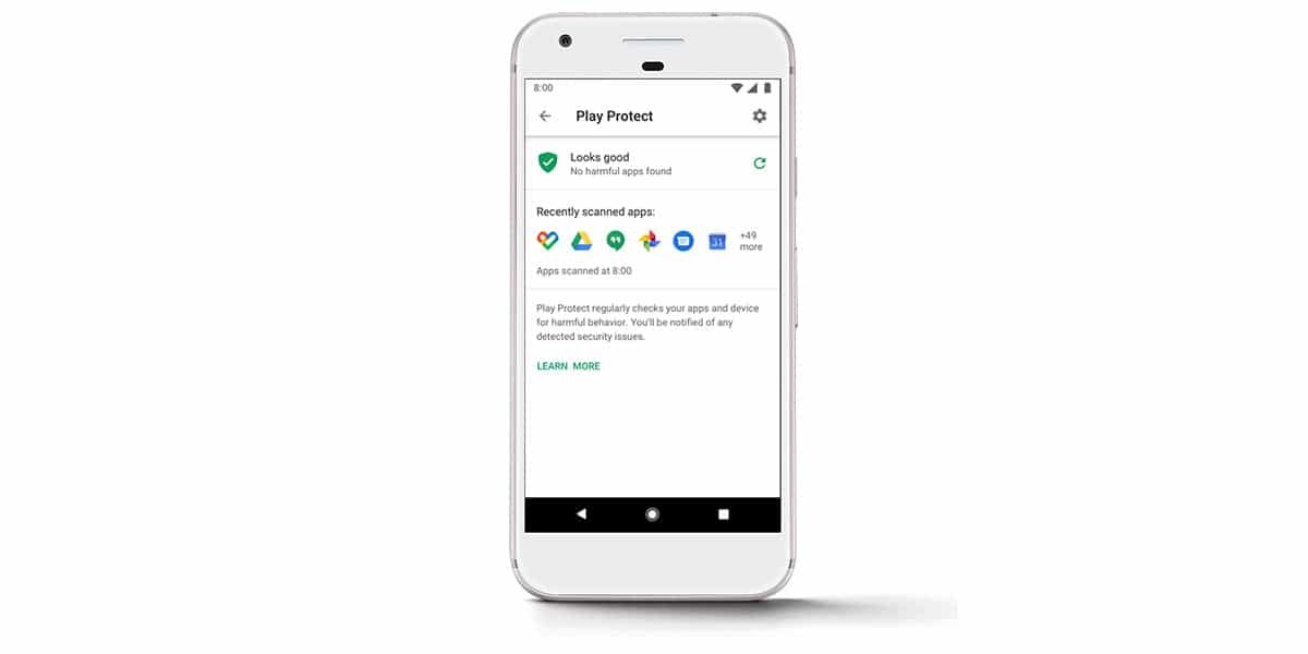 우리는 말할 수있는 것으로 끝납니다 최선의 대안은 무엇입니까, Google에서 제공하고 필요한 특성이 있기 때문입니다. 이 바이러스 백신 또는 보안 보호기는 Google Play가 설치된 모든 모바일에 통합되어 있습니다.