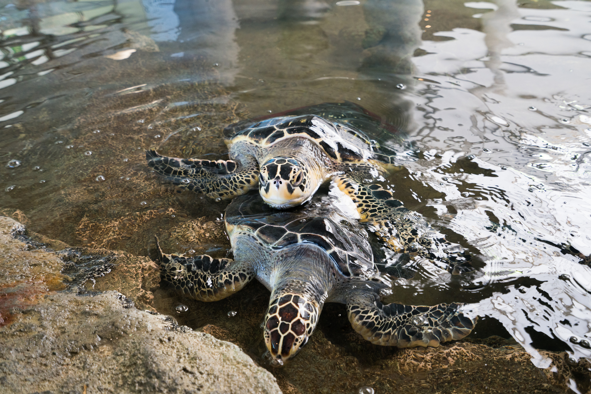 입구 정면에 있는 아마미의 바다를 본뜬 대형 수조에서는 유유히 헤엄치는 바다거북이나 열대어 등을 볼 수 있습니다. 또한 새우와 게 등 사람들의 삶에 익숙한 생물을 볼 수 있는 작은 수조도 있습니다. 그 외, 조개와 산호를 사용하여 오리지널 작품을 만들 수 있는 핸드 크래프트 체험도 추천합니다.