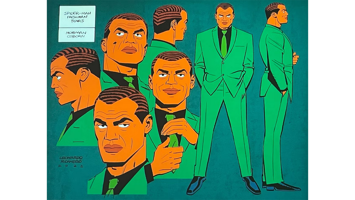 여전히 패널에 전시된 한 작품에서 스파이더맨은 초기 수제 의상을 입고 오스본 앞에 서 있습니다. 아마도 Norman은 Tony Stark 대신 그의 수트를 다음 단계로 끌어 올리는 데 도움이 될 것입니다. Osborn과 Parker 사이의 이러한 긴밀한 관계는 잠재적으로 급증하는 악당 영향력을 Parker에 부여할 뿐만 아니라 궁극적으로 그들의 적대감을 끊임없이 죄책감에 휩싸인 영웅에게 더욱 가슴 아프게 만들 것입니다.