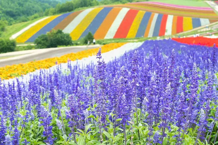 7월 초부터 아름다운 라벤더 꽃밭이 후라노의 구릉지대를 화려한 색상과 풍부한 향기로 물들입니다. 수많은 라벤더와 다양한 꽃밭이 이 지역에 산재해 있는데, 가장 유명한 곳은 도카치 산지를 배경으로 깔끔한 다색의 화단을 자랑하는 팜 도미타입니다.
