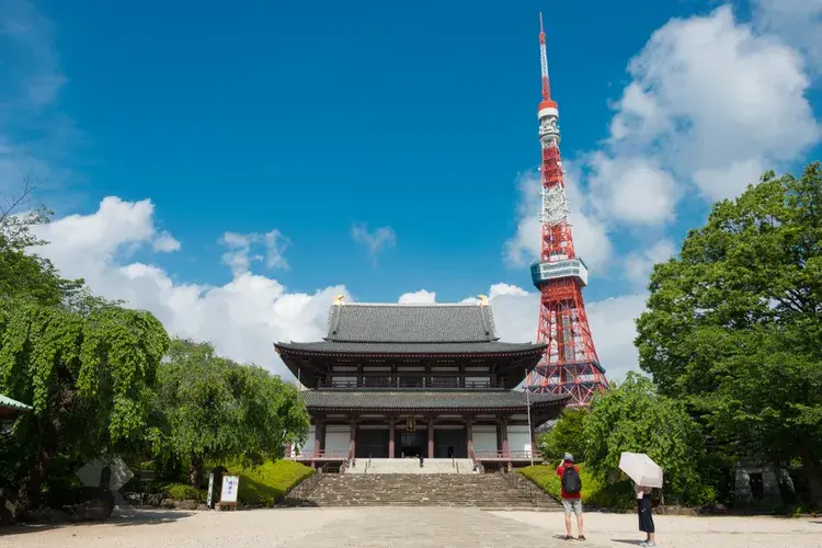 도쿄타워 바로 앞에는 조조지 사찰이 있습니다. 16세기에 창건된 조조지는 도쿄타워 바로 아래에 자리 잡고 있습니다. 조조지와 도쿄타워가 보여주는 신구(新舊)의 대조적인 건축 양식은 멋진 사진을 찍을 수 있는 아름다운 풍경을 자아냅니다.