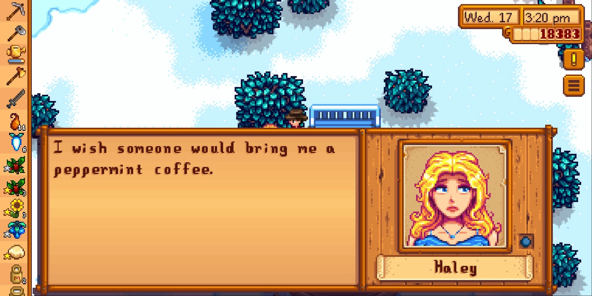 Stardew Valley의 Haley는 Emily의 매력적인 자매입니다. 부유하게 자란 그녀는 사치에 대한 취향이 있지만 정원 가꾸기와 사진 촬영도 즐깁니다.