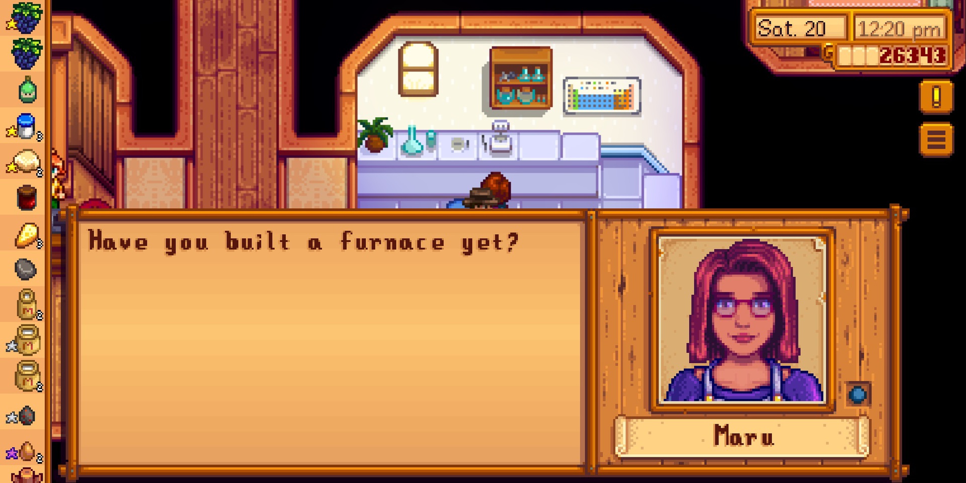 Stardew Valley의 Maru는 마을 목수 Robin과 Demetrius의 딸입니다. 그녀는 기계를 만지고 과학자인 아버지와 함께 실험하는 것을 좋아합니다. 그녀는 마을 병원에서 아르바이트를 한다.