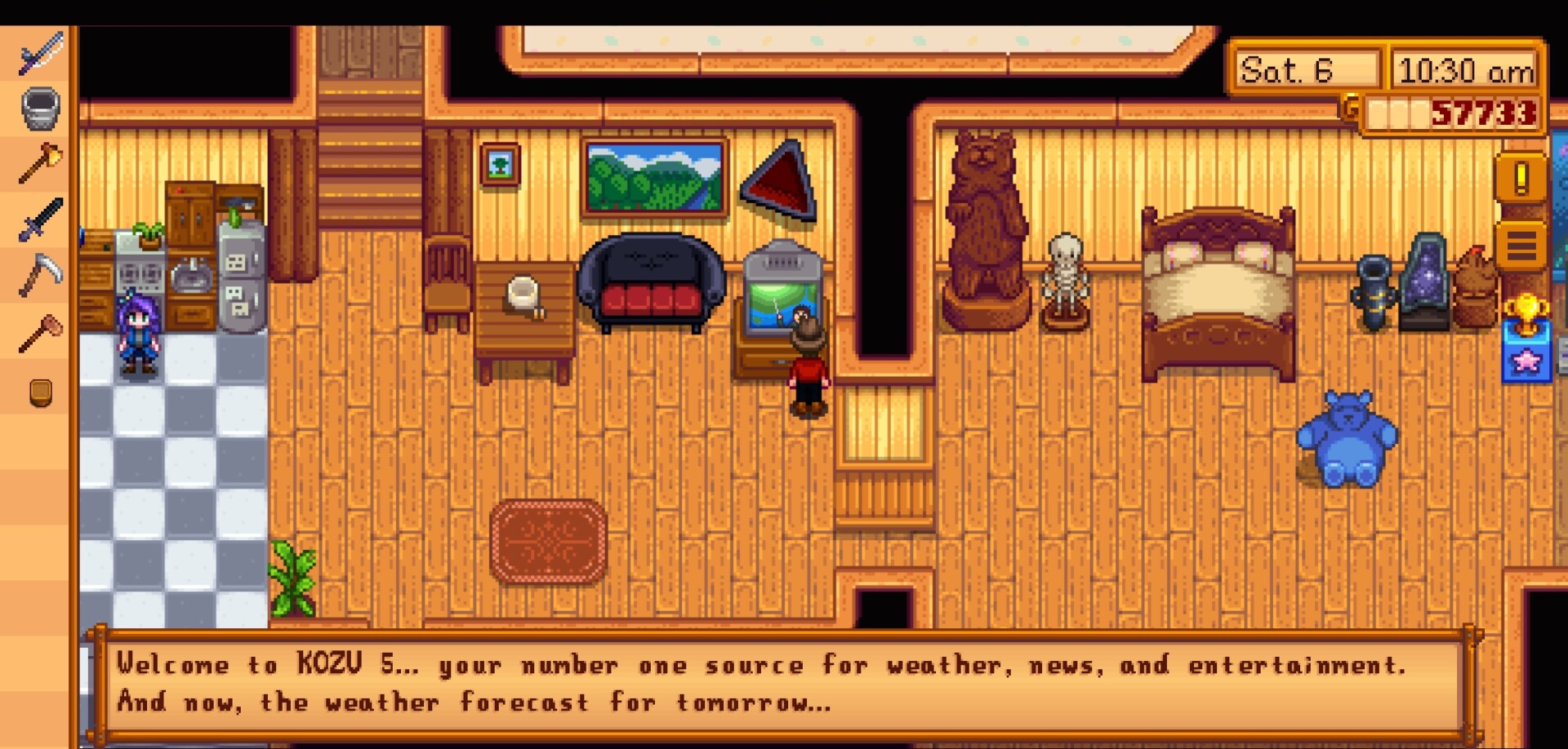 스타듀밸리(Stardew Valley)에서 눈을 떴을 때 가장 중요한 일은 무엇인가요? 아니, 양치질을 하거나 세수를 하는 것이 아니라 TV를 켜서 무슨 일이 일어나는지 확인하는 것입니다!