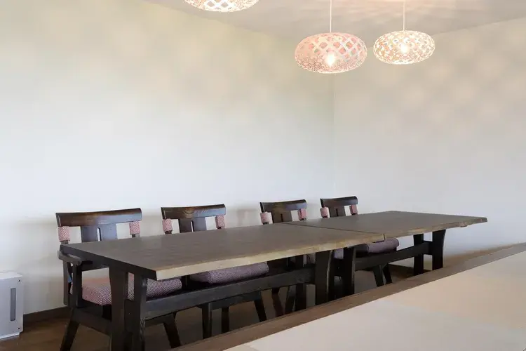 관내에서도 웅대한 경관을 감상할 수 있도록 설계되어 있고 사각형 류큐 다다미가 깔린 거실, 식탁에서도 전원이 펼쳐진 후라노의 한가로운 경치와 함께 그 시간을 즐기며 보낼 수 있습니다.