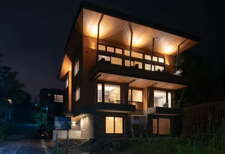 목재와 철을 접목한 현대식 일본 건축 별장으로 방 6개 중 5개에 전용 욕실이 갖춰져 있어 가족끼리의 숙박에도 부담 없이 지낼 수 있는 구조입니다.