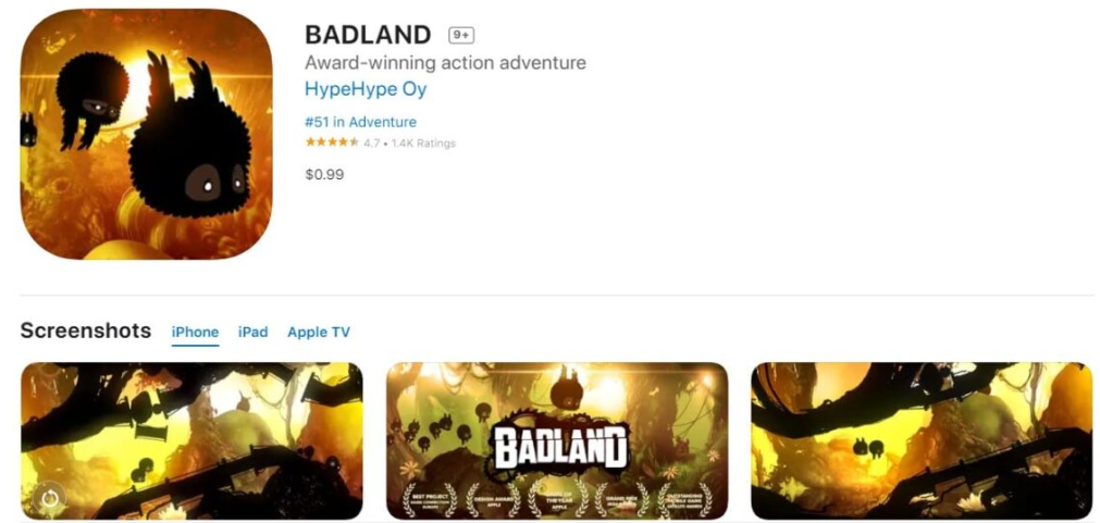 플레이어는 별 4.7개로 평가되었으며, 올해 최고의 디자인 및 게임으로 선정되었습니다 . 전 세계적으로 1억 명 이상의 사용자가 플레이합니다. 가격은 1유로입니다.