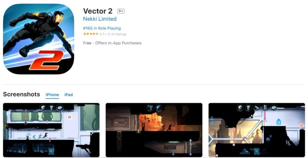 벡터2는 주인공이 미래 환경에서 목숨을 걸고 달리는 게임입니다. 주요 요소는 파쿠르의 아이디어를 통해 움직이는 캐릭터의 움직임입니다. 성공하면 새로운 능력이 잠금 해제됩니다.